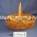Egg Shaped Gold Rattan Woven Shopping Basket With Handle
