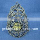 Rust Egg Shaped Wire Decorative With Red Pearl Storage in Hanging Baskets With Handle