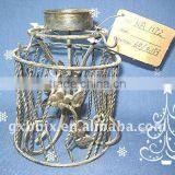 Green Pearl Gold Wire Round Hanging Decorative Metal Candle Holder Craft