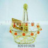 Set of Two Orange Round Iron/Plastic Bead Gift Basket for Home Decoration