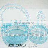 Set of Three Blue Round Wire Gift Basket for Easter Decoration
