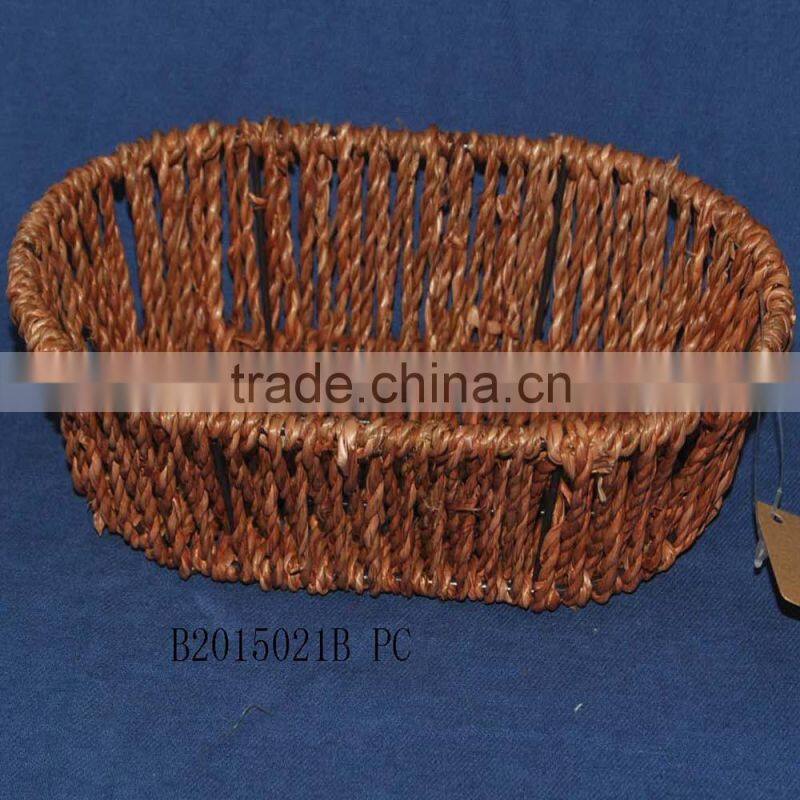 Hand-woven Water Hyacinth Storage Basket With Metal Frame