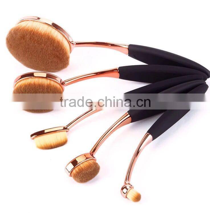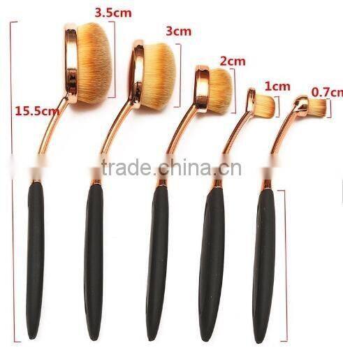 Wholesale Best Selling Oval Makeup Brush 5pcs Rose Gold Toothbrush Foundation Brush Set