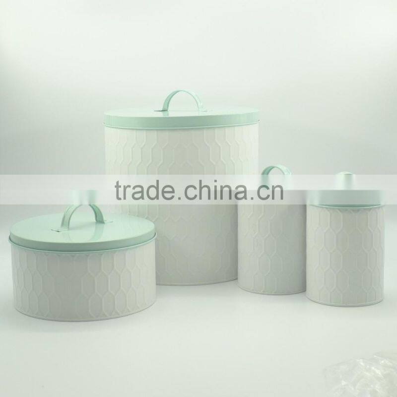 Powder-Coated Retro Metal Embossed Dianond Tea Coffee Sugar Storage Canister,Bread Bin,Cake Tin