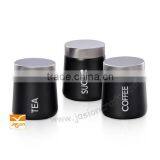 3PC Canister Set Stainless Steel Coffee Tea Sugar Jar Lid Kitchen Storage Black Can