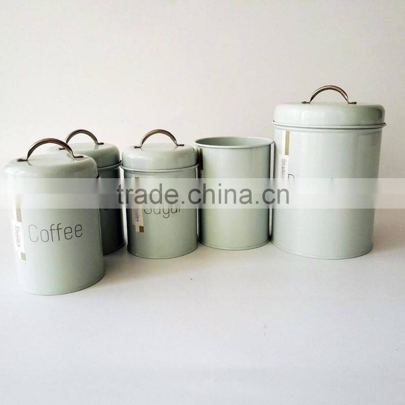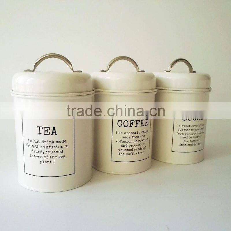 1.5L Retro Metal Tea Coffee Sugar Can Bin Pea Bean Lentil Set of 3 Storage Canister