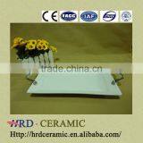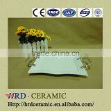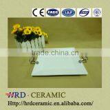 Factory Supply Stock Cheap Square White Ceramic Plate With Metal Handle