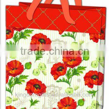 Red flowers art paper shopping bags