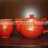 Porcelain Tea Kettle and Porcelain Cup-red Glazed