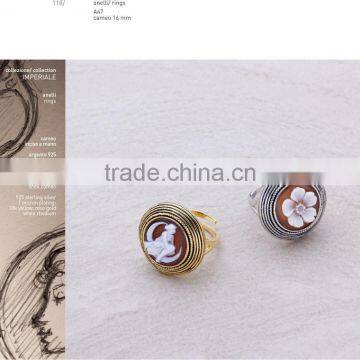 Fashion Jewelry 925 Sterling Silver Handcrafted Vintage Fairy And Flower Pattern Cameo Ring Made in Italy A47 cameo 16mm