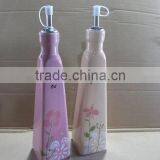 Ceramic Pink Glaze Flower Design Oil Olive and Vinegar Bottle Set