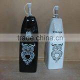 Black White Ceramic Owl Design Oil Olive Vinegar Bottle Set