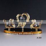 24K Gold Plated Tabletop Love Swan Decoration With Crystals From Swarovski