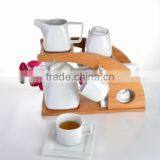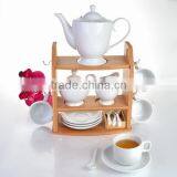 Food Grade White Ceramic Porcelaine Chinese Tea Coffee Cup and Pot Set for Dinner With Wooden Holder