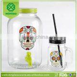 3L Happy Halloween Skull Glass Beverage Dispenser and Mason Jar