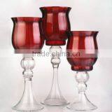 Set 3 Red Color Glass Candle Holder With Trumpet Base
