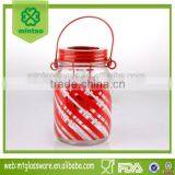 Bright Red Color With Paper Transter Candle Holder Glass Mason Jar With Lid