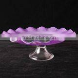 Antique Colorful Glass Cake Plate With Lacy Rim