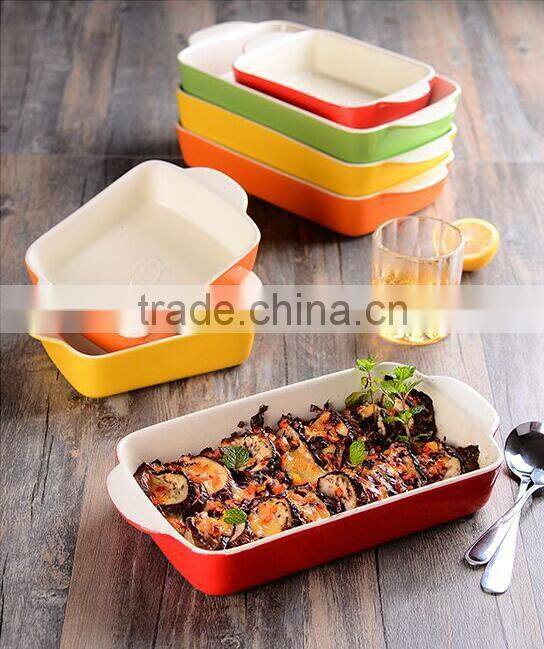 2017 Colorful Glazed Stoneware Baking Pan Dishes Custom Ceramic Bakeware Sets