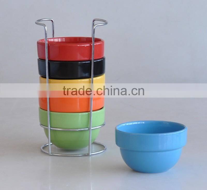 Description :6pcs stackable bowl with metal rack,solid color