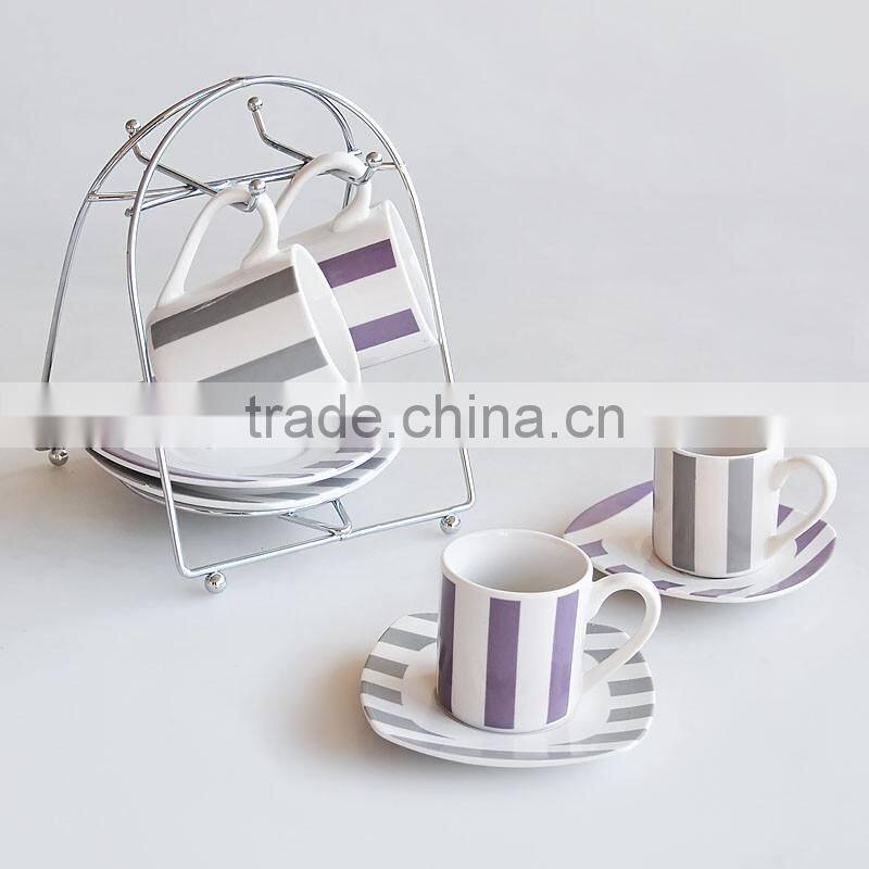Porcelain 75ml espresso cup and saucer with rack