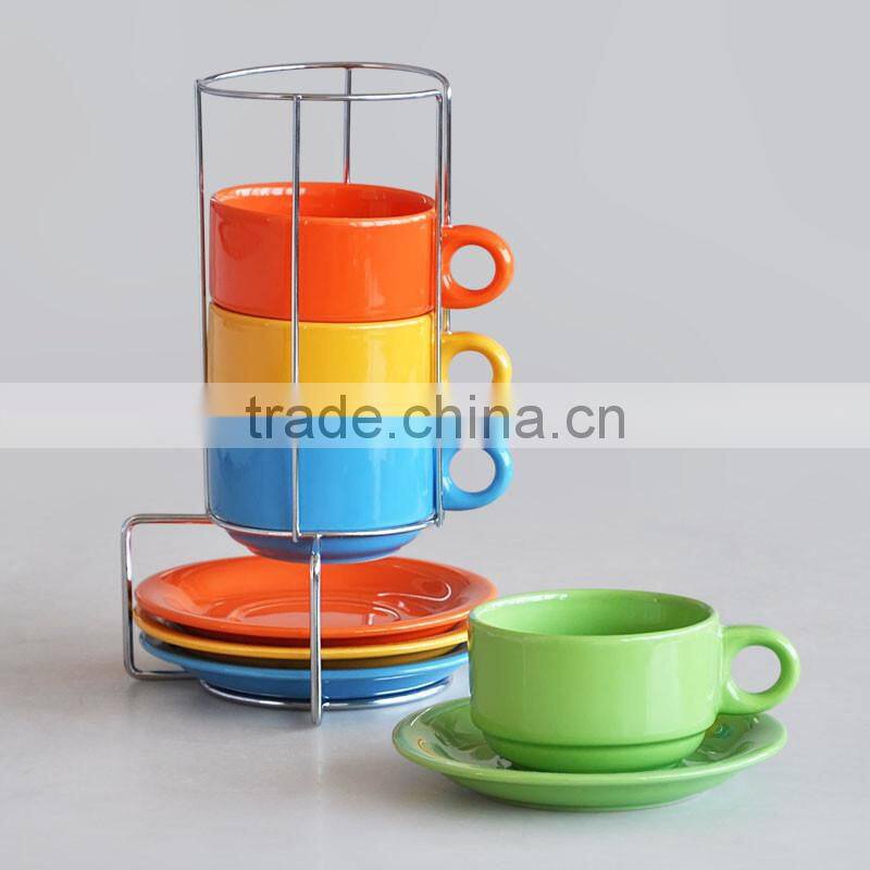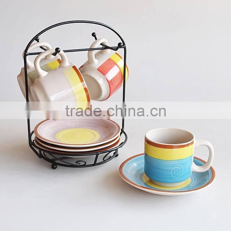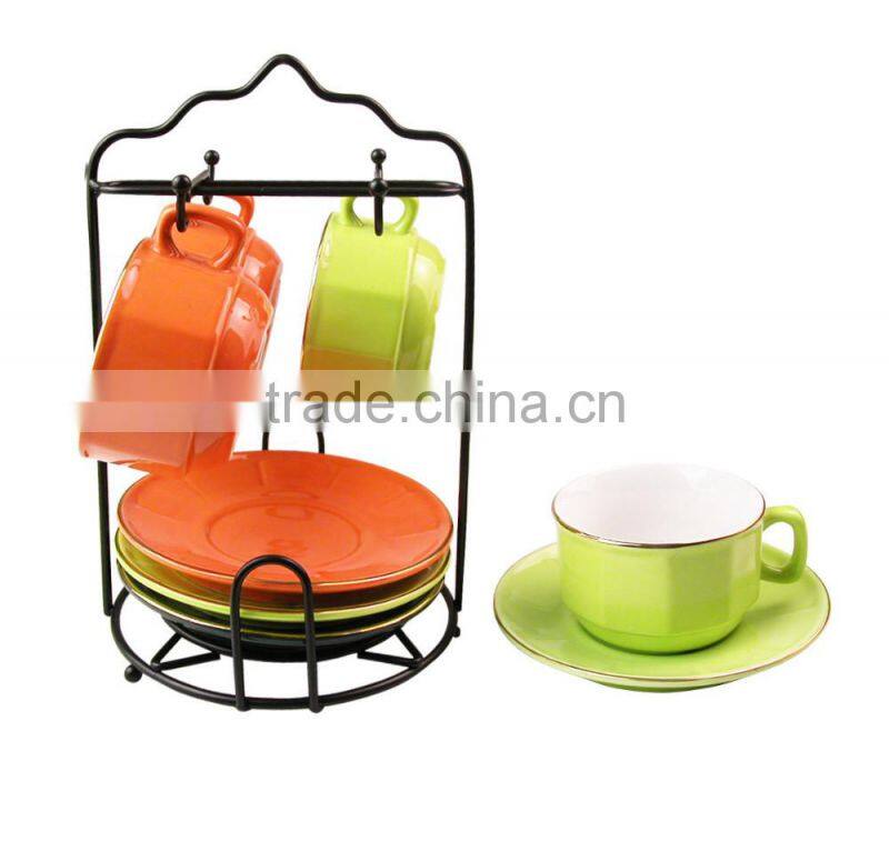 Size:1set=4pcs 75ml espresso cups +4pcs 11cm saucers +rack.