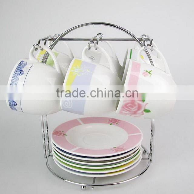 6pcs porcelain coffee cup and saucer set with flower design printing