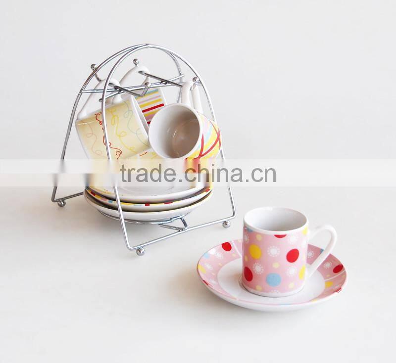 Set 6pcs porcelain 75cc cup and saucer in color box packing