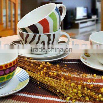 300cc coffee cup & saucerporcelain coffee cup & saucer with decal printing