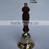 Wooden Handle With Metal Knob Bell Made in Brass With Mirror Polish