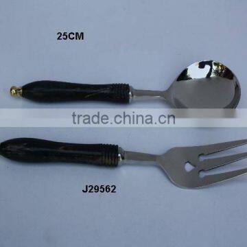Wooden handle salad server set in steel polished handles in other material also available.