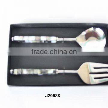 Mirror Polished Salad Set Made in Steel With Mother of Pearl Mosaic