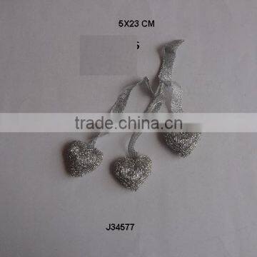 Three Silver Heart Shaped Glass Beads Christmas Tree Ornament Available in All Colours and Sizes