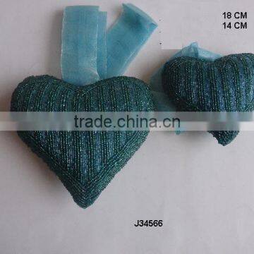 Heart Shaped Blue Colour Set of 2 Pcs Glass Bead Christmas Tree Ornament Available in All Colours and Sizes
