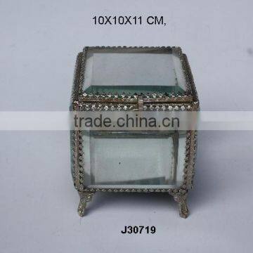 Glass and Brass Box With Brass Fittings in Nickel Finish Glas in Plane and Square Box With Feet