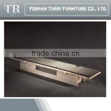 Latest design Iran travertine marble TV stands glass top
