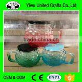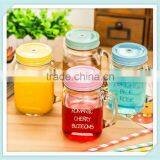 2016 Hot Sales Pump Lid 500ml Colorful Glass Mason Jar With Handles Wholesale