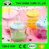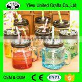 Hight Quality Glass Mason Jar With Handle and Hinged Lids,glass Mason Jars With Lids and Straw Glass Bottle
