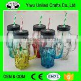 Colorful Skull Head Shape Glass Drinking Cup; Skull Head Glass Mason Jar