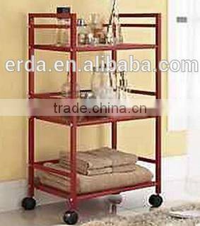 4 Tier Metal Shelves On Wheels, Metal Wood Storage Cart