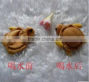 When it swells fully, you can take it out from the water and wipe it dry with a towel, then you will get a soft and fat toy to play. It will get smaller after the water evaporates so can be cycle used.