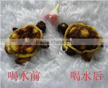 When it swells fully, you can take it out from the water and wipe it dry with a towel, then you will get a soft and fat toy to play. It will get smaller after the water evaporates so can be cycle used.