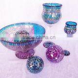 C.Main Items are glass mosaic items.glass vase,pot,glass candleholder,drinking glasses,goblet,glass bowl,glass plate,glass jar for storage and perfume bottles.And we also deal with other seasonal decorations and home decoration,for example: heart,egg and animal.