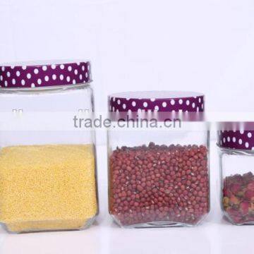 | Description | Set 4 Clear Square Empty Glass Storage Jars with Dot Metal Lid |