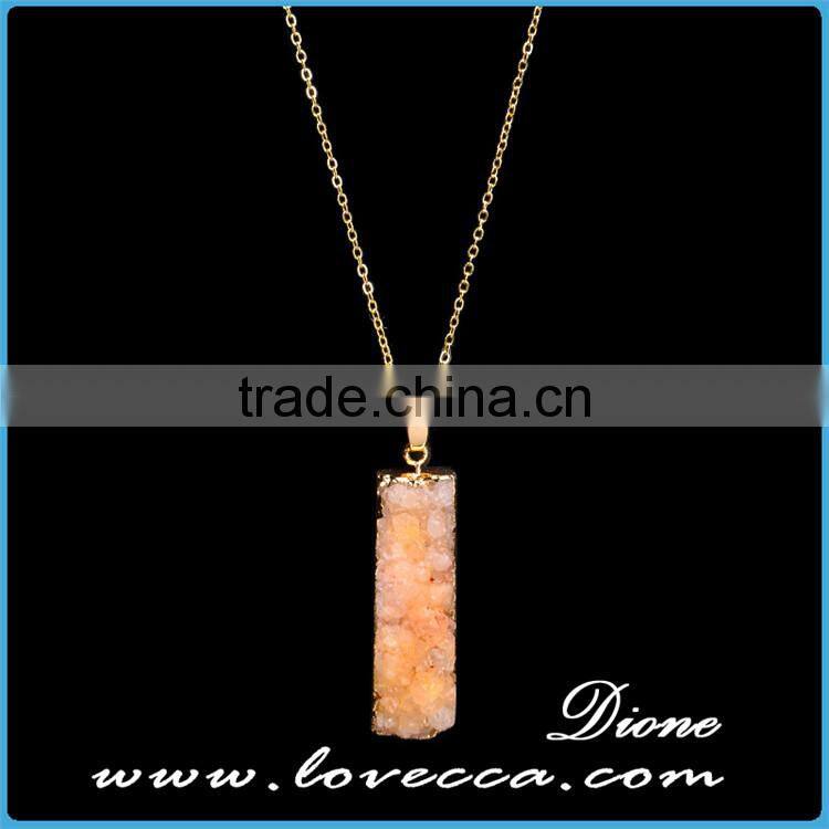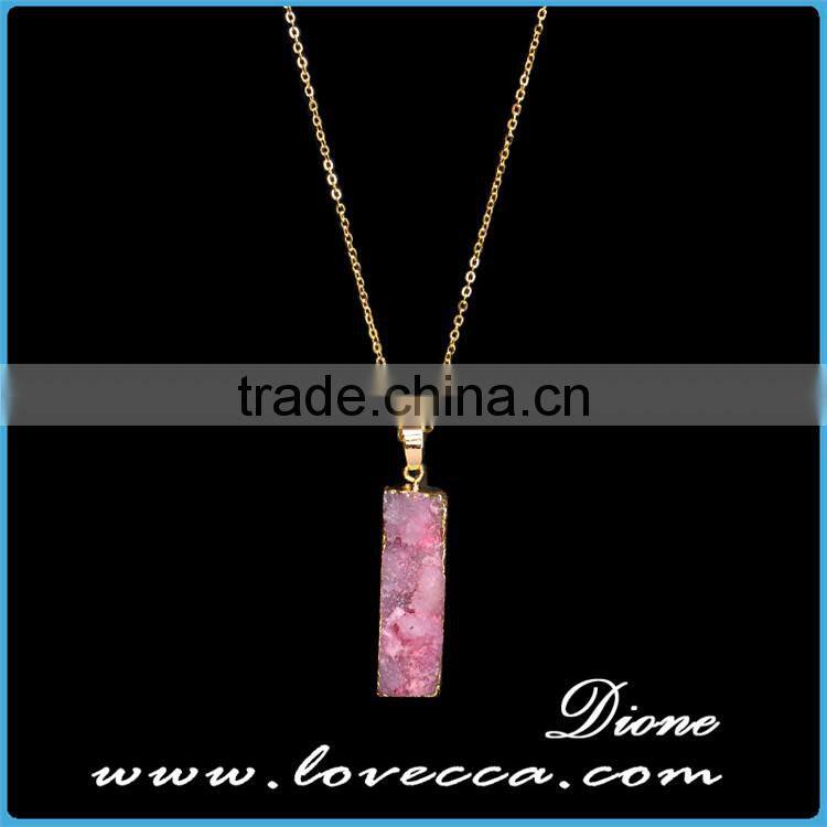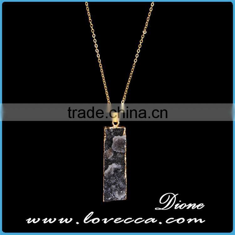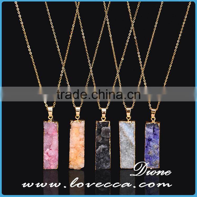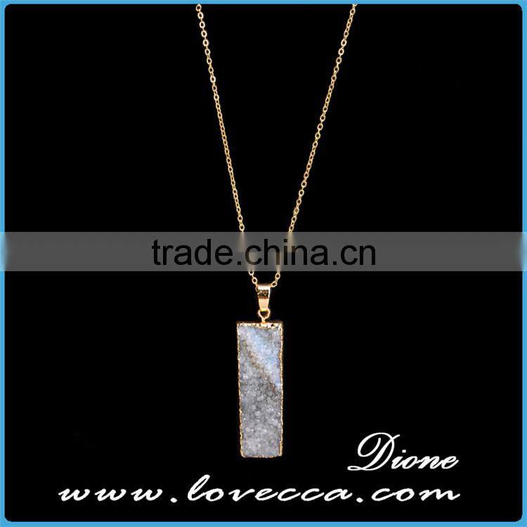 Gold Plated Retancgle Raw Agate Crystal Jewelry Druzy Geode Necklace