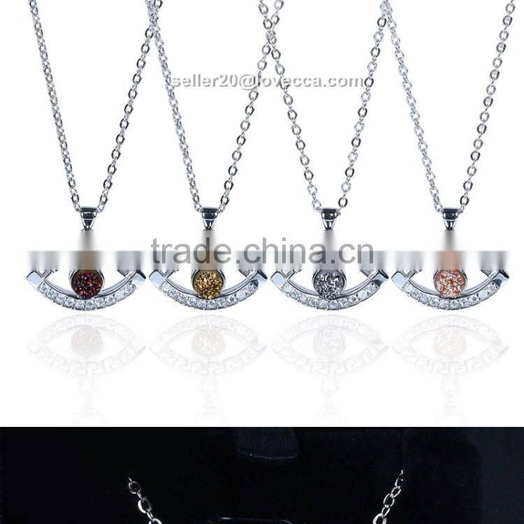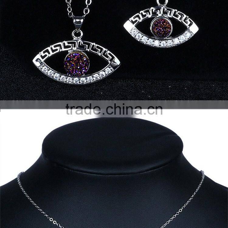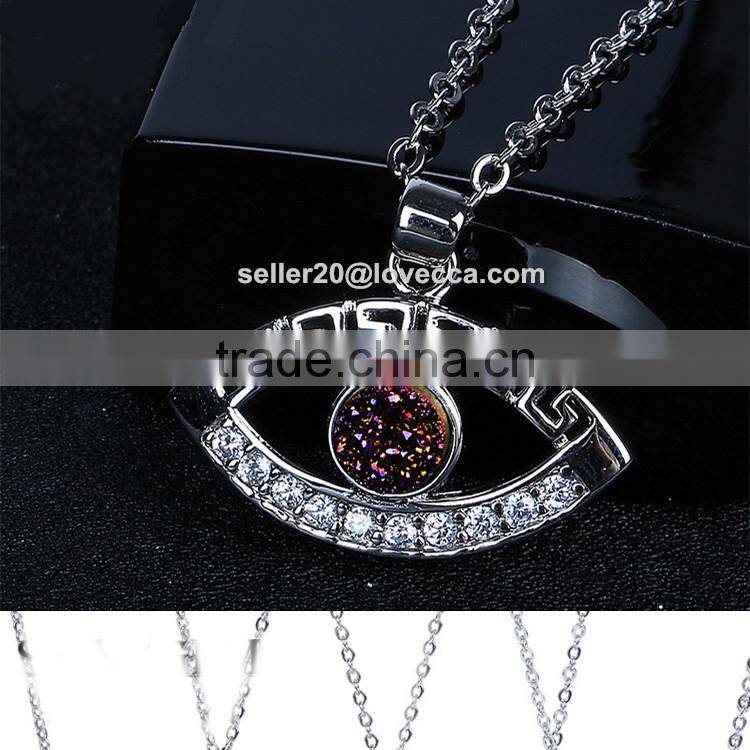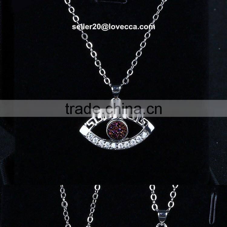 2S925 Sterling Silver Evil Eye Natural Drusy Agate Crystal Quartz Geode Druzy Pendant