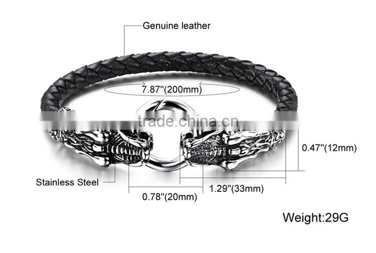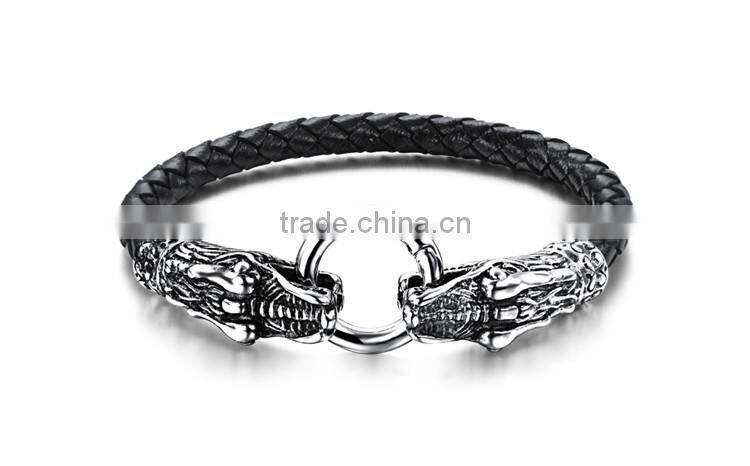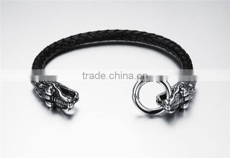 Wholesale Black Dragon Leather Bracelet Mens Leather Bracelet