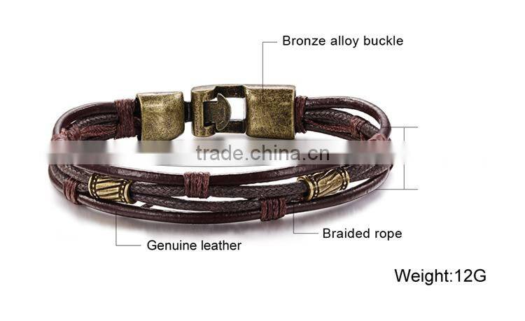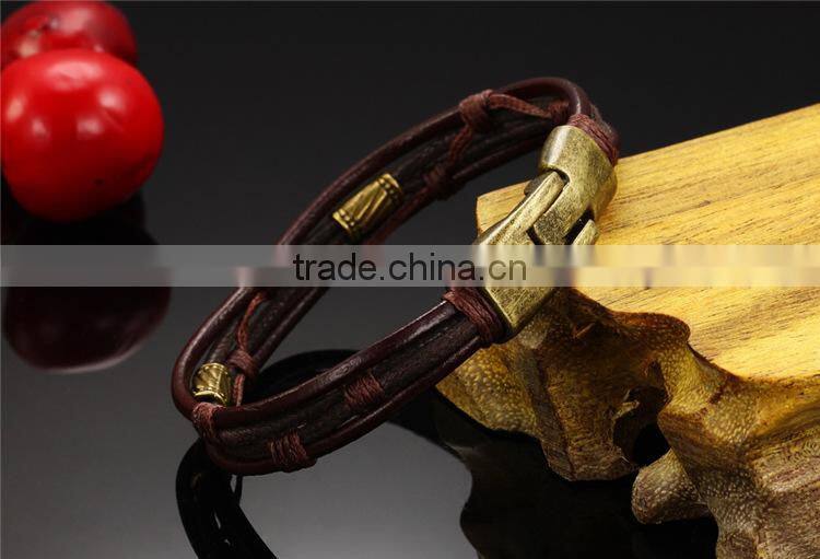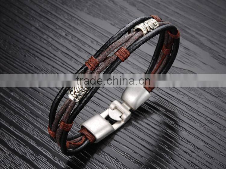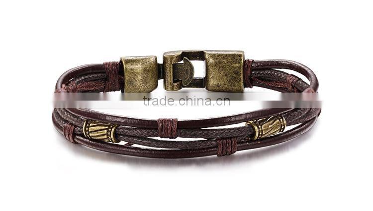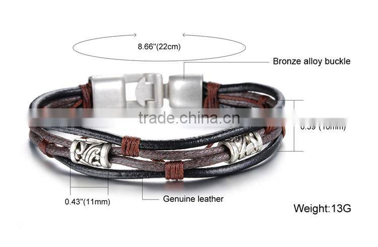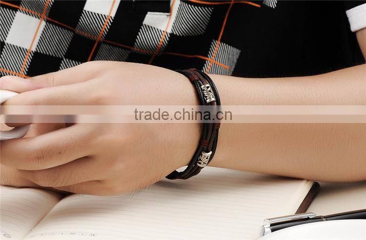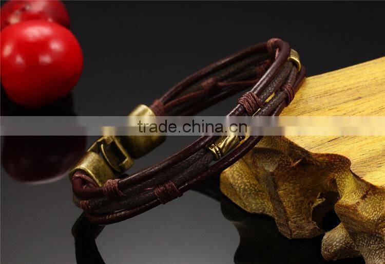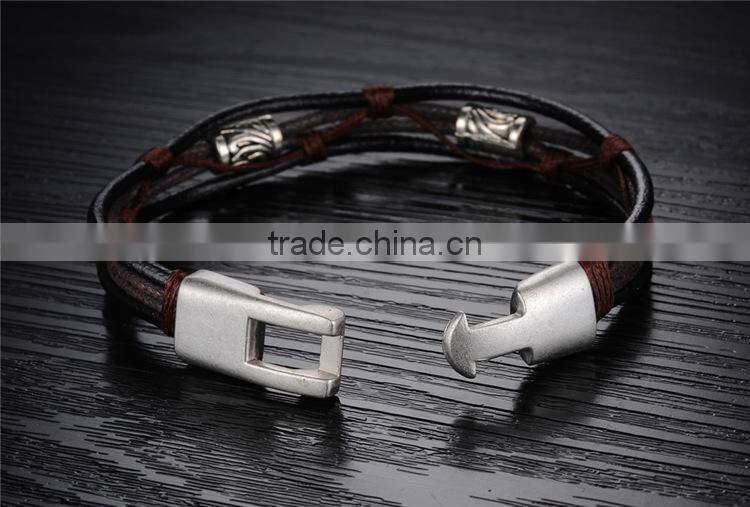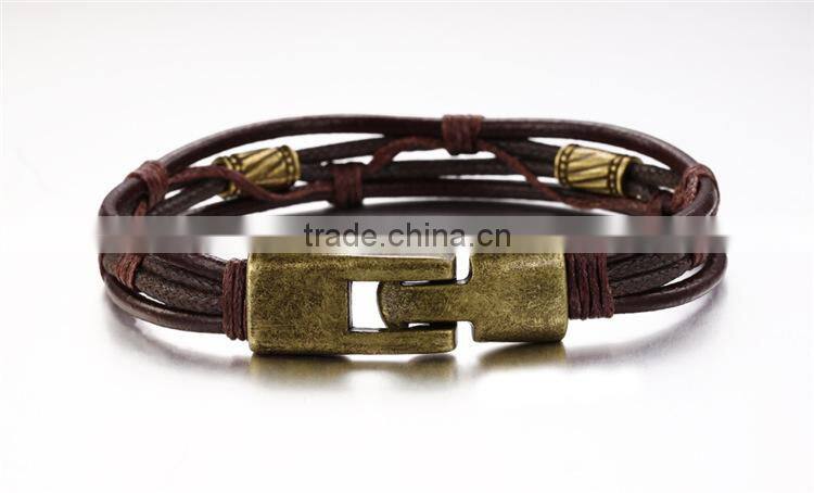Cheap Price Multilayer Genuine Leather Men Bracelets Casual/Sporty Easy Alloy Hook Link Chain Men Jewelry