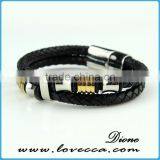 Stainless Steel & Leather Mens Bracelet , Braided Genuine Leather Bracelet Men Stainless Steel
