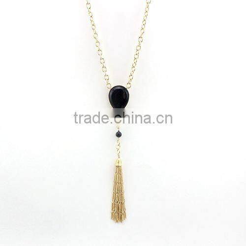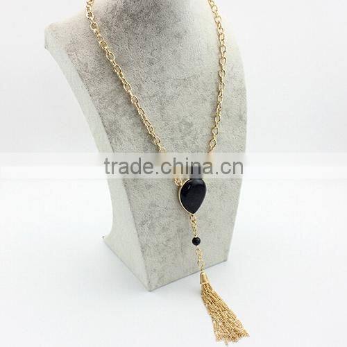 tassel teardrop gemstone gold druzy pendant necklace